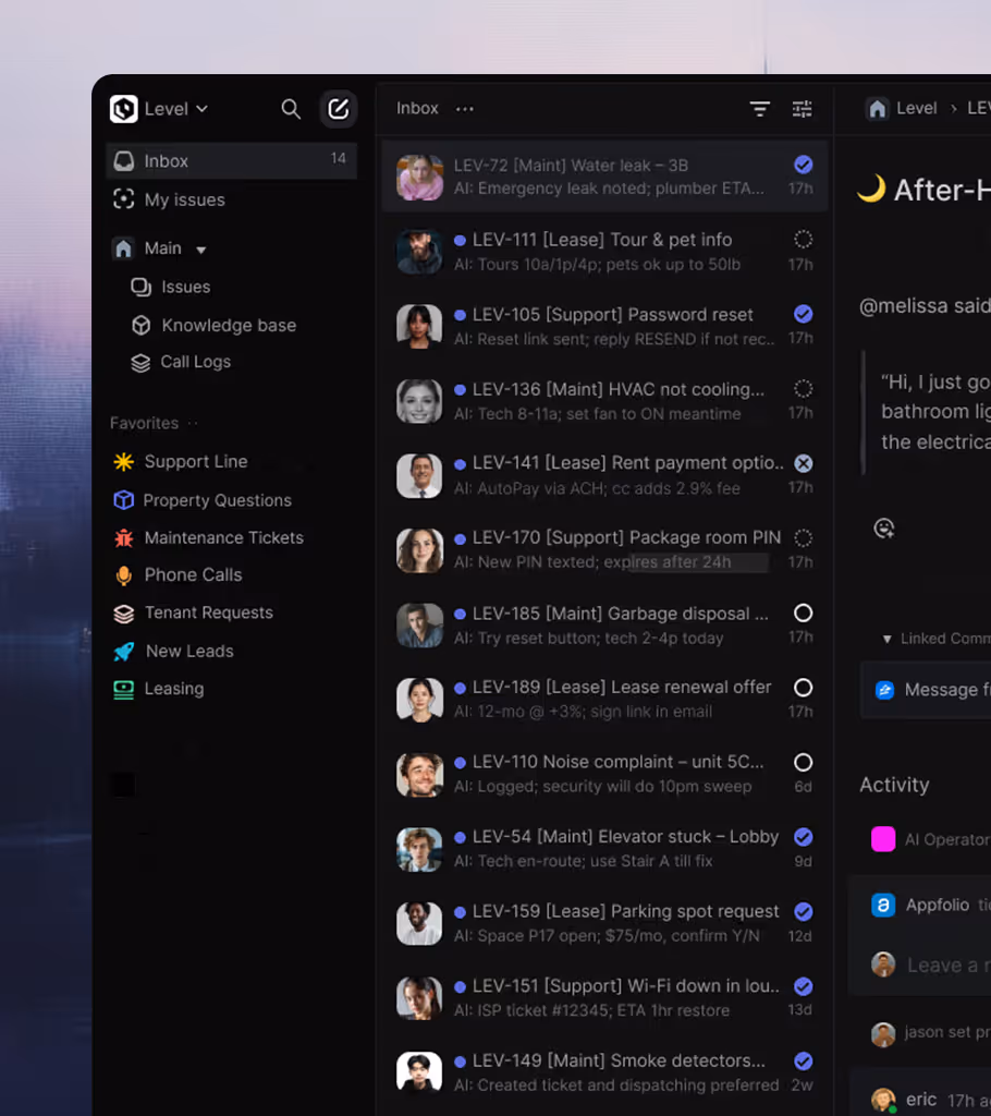 Handle every inbound call, text, and message from triaging issues to dispatching vendors, so your team can focus onsite on what's most important